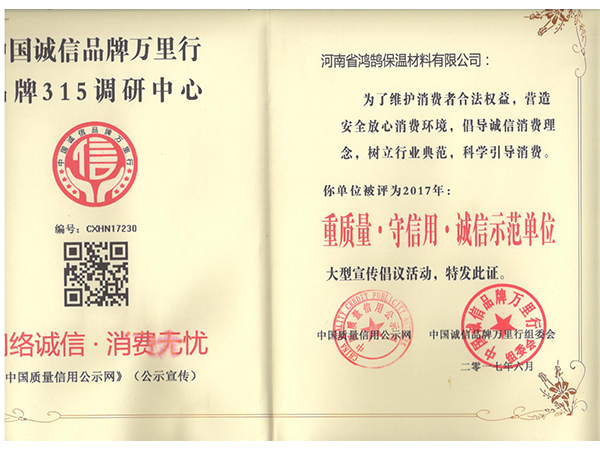 ”用戶至上"是公司一貫的宗旨。嚴(yán)格而行之有效的售前、售后服務(wù),是河南省鴻鵠保溫材料有限公司信心的保證。